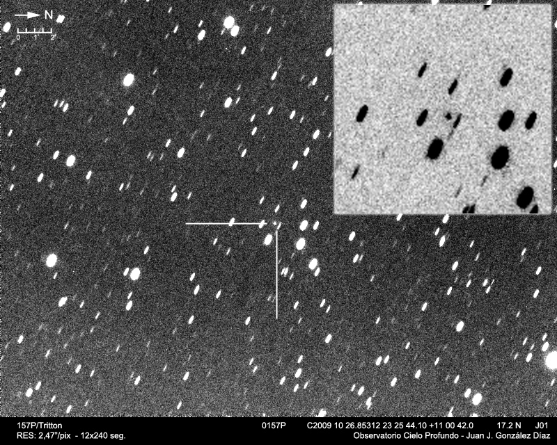 Nuevas imágenes de estos tres cometas. El 47P presenta una magnitud 17.5 y se encuentra a unos 350 millones de km. de distancia. Por otro lado, el 157P con una magnitud que también ronda 17, está mucho más cerca, a unos 150 millones de km.