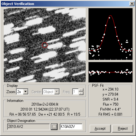 Esta noche he conseguido volver a observar el asteoride que he descubierto la semana pasada. Con estas nuevas mediciones podemos ir afinando los cálculos de la órbita, con el objetivo de definirla lo mejor posible para poder recuperarlo en el futuro. Con esta nueva medida se ha modificado la primera órbita preliminar, pasando el asteroide a tener un periodo de rotación alrededor del Sol de 3,9 años. La magnitud parece permanecer constante, entorno a 19.5