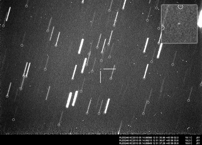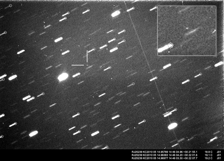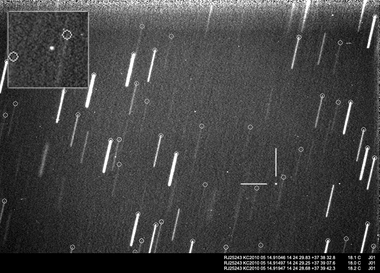 NEOs aún sin nombre oficial 15 mayo 2010 • Juanjo Gonzalez Tres nuevos NEOs fotografiados la pasada noche. Son objetos recien descubiertos pendientes de confirmación y numeración. Observaciones con estas permiten primero confirmar su existencia, además de ayudar a determinar su órbita. Comparte esto: Haz clic para compartir en Facebook (Se abre en una ventana nueva) Facebook Haz clic para compartir en X (Se abre en una ventana nueva) X Me gusta Cargando... Relacionado
