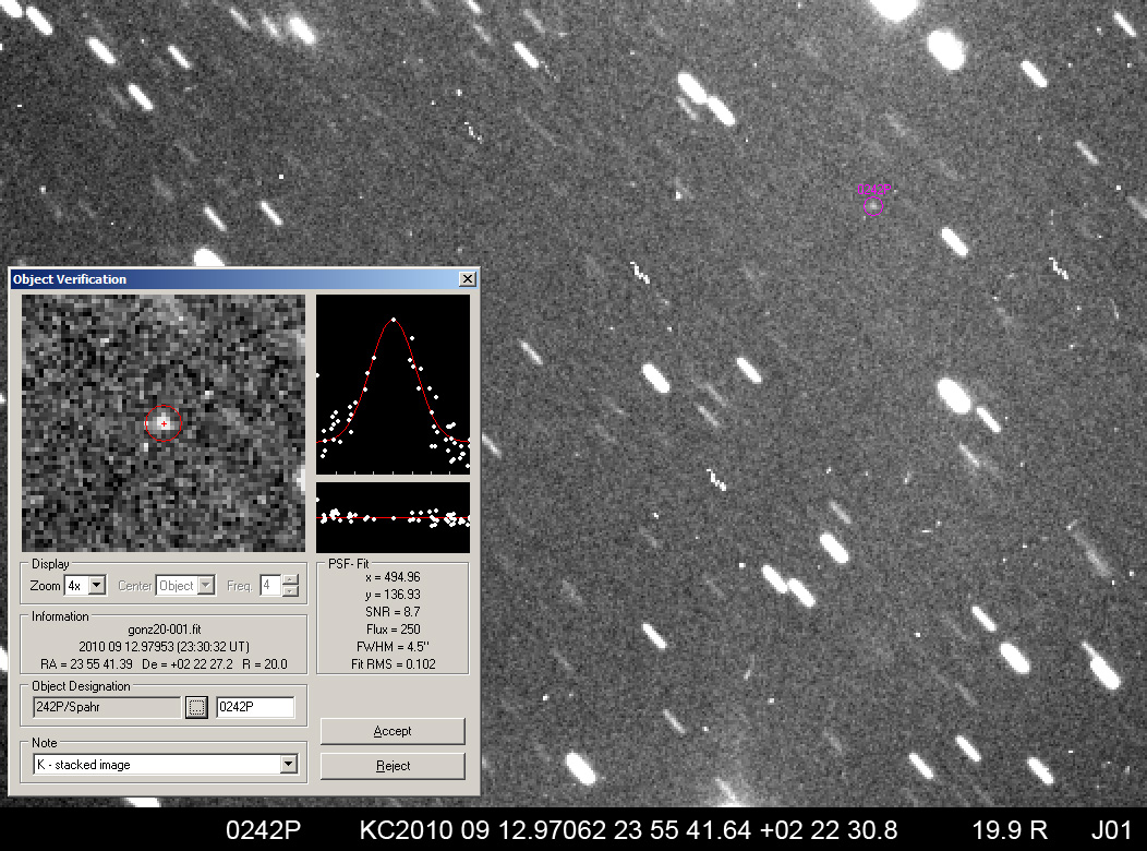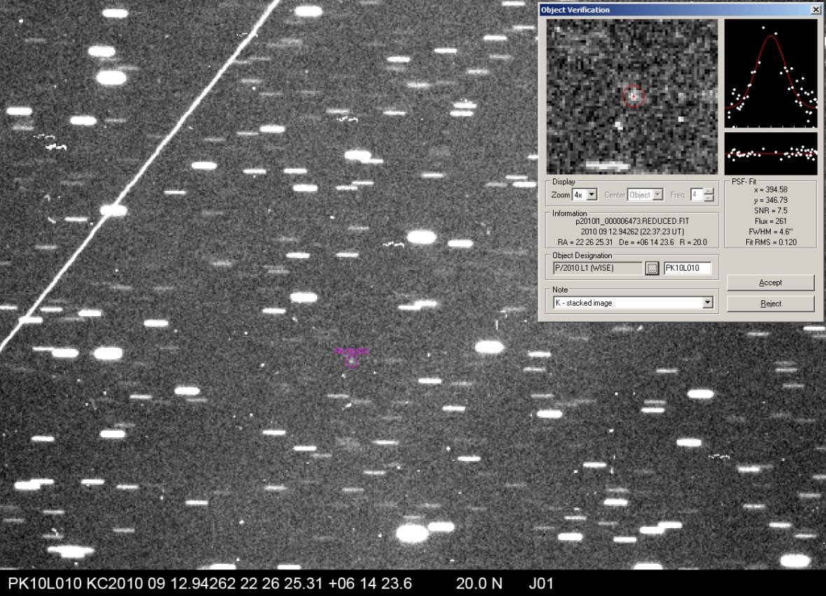 Cometas 242P y P/2010 L1 13 septiembre 2010 • Juanjo Gonzalez Al contrario que el 103P y el 10P, en esta ocasión he podido fotografiar dos cometas que presentan una magnitud realmente débil, y que son realmente difíciles de capturar y medir. Ambos cometas presentan magnitud 20. Comparte esto: Haz clic para compartir en Facebook (Se abre en una ventana nueva) Facebook Haz clic para compartir en X (Se abre en una ventana nueva) X Me gusta Cargando... Relacionado