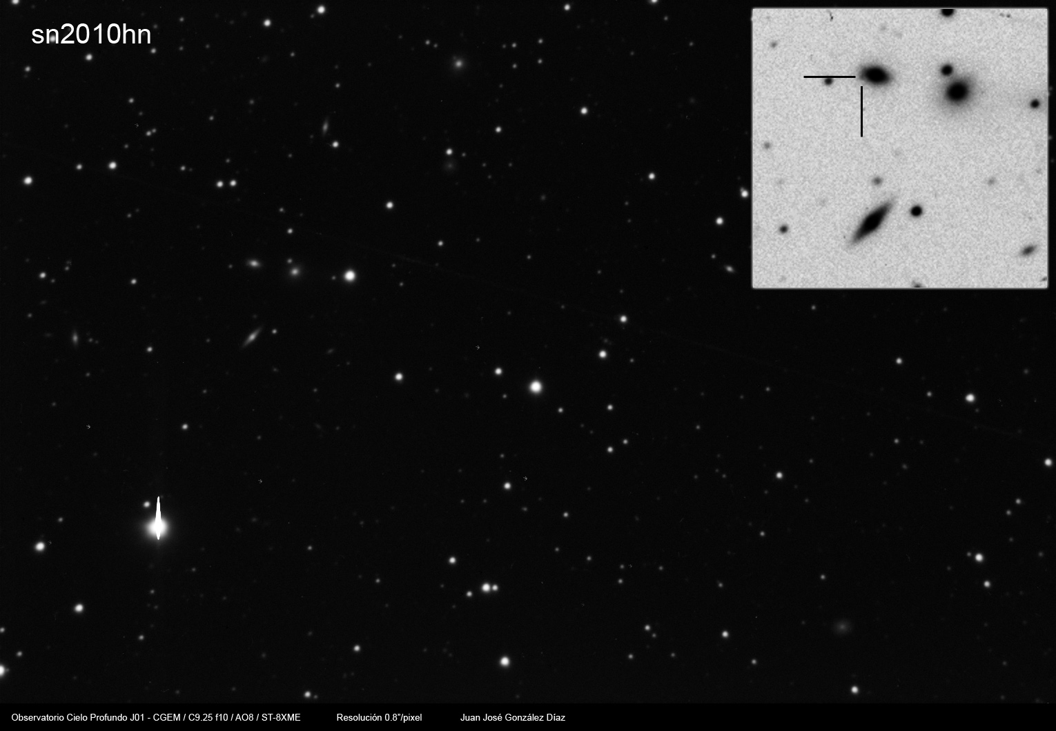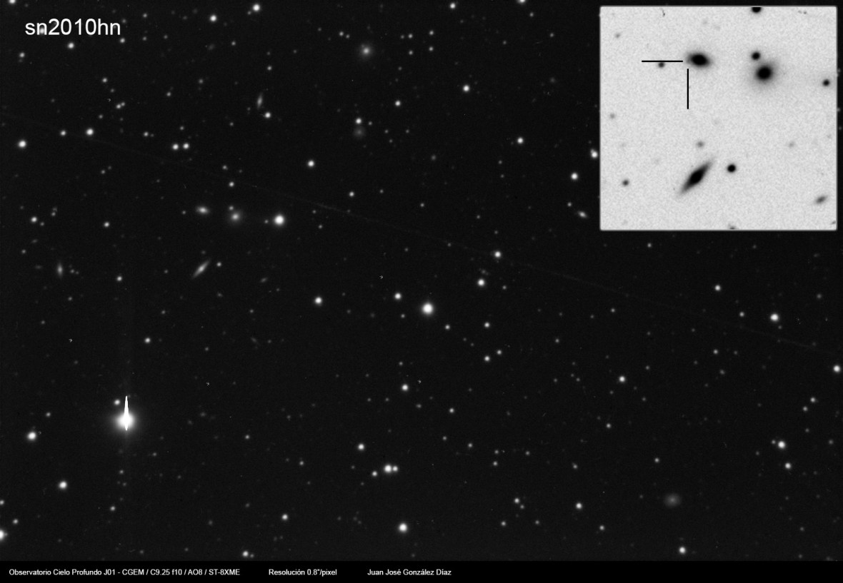La SN2010hn es realmente difícil de ver, apenas apreciable como un grumo dentro del núcleo de la galaxia.