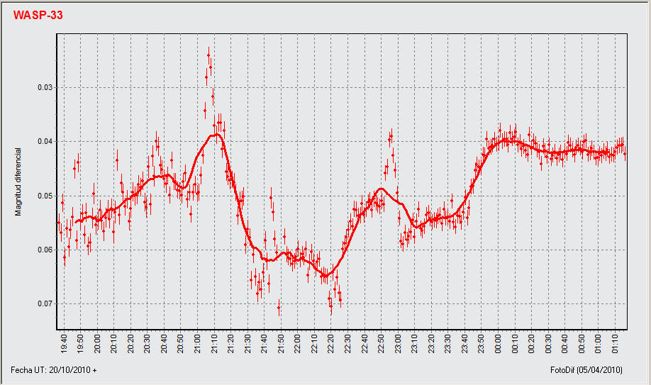 Este es un nuevo intento de captar con nuestro telescopio el movimiento de un planeta extrasolar durante su paso por delante de la estrella que forma su sistema solar. En este caso se trata del exoplaneta WASP-33b.