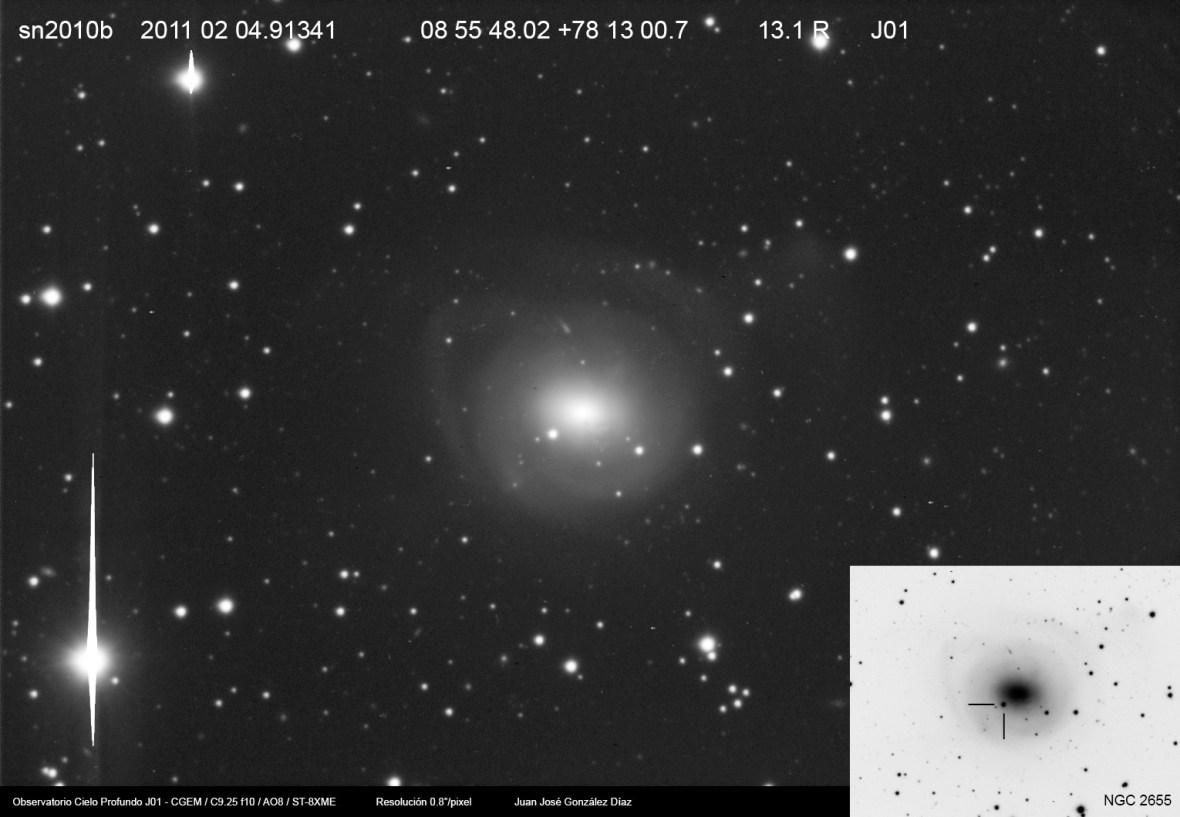 Una nueva captura de esta interesante supernova, aparentemente ya un poco más débil, pero aún visible visualmente con telescopios de aficionado. La pasada noche he podido observarla perfectamente con el C11 … un auténtico espectáculo y un escalofrío al ver en directo semejante explosión estelar sucedida hace más de 65 millones de años.