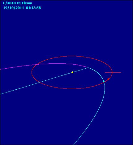 Seguimos estudiando este cometa, que nos puede dar un bonito espectáculo este año después del verano. De momento no resulta muy llamativo, y no hay novedades especiales sobre su órbita. Se calcula una magnitud máxima entorno a 5 para cuando sea visible hacia el 20 de Octubre, después de su perihelio. Ese es el momento que se puede ver en la órbita que podéis ver debajo, pero puede ser más brillante dependiendo de la actividad que desarrolle.