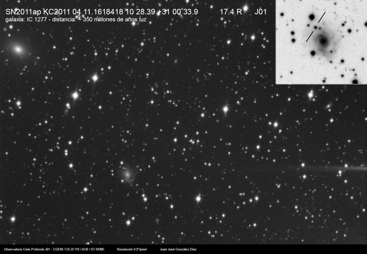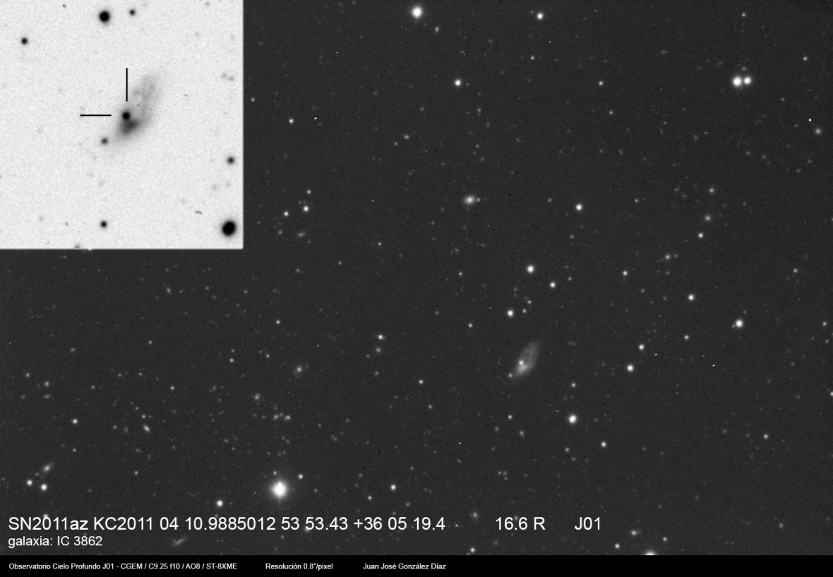 Tres nuevas supernovas capturadas hace unos días, todas ellas bastante recientes. En todos los casos además de contemplar la explosión de la SN podemos apreciar las interesantes galaxias que las contienen, una de ellas a casi 350 millones de años luz de nosotros.