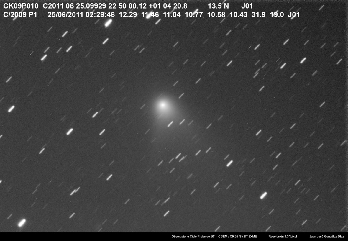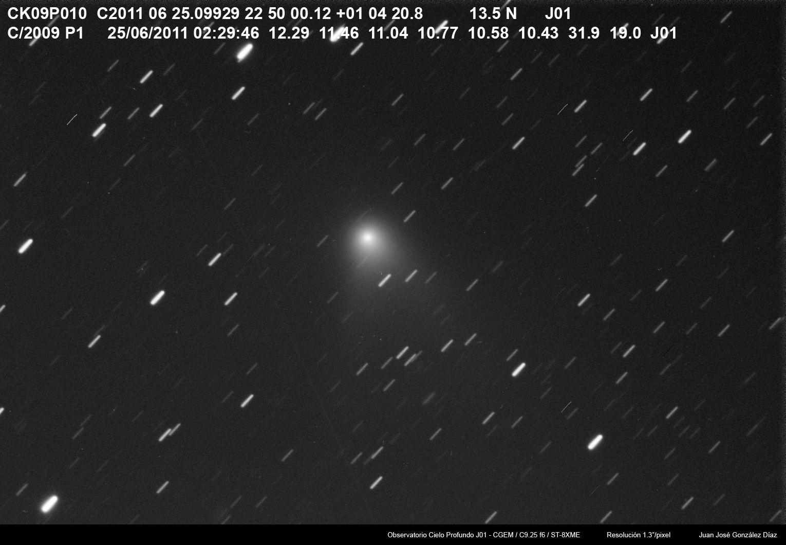 Continuamos el siguimiento de este interesantísimo cometa, que presenta ya un aspecto formidable. Esta imagen de la pasada noche nos muestra las dos colas y la coma que presenta el cometa en la actualidad, cerca del amanecer. Con una mag. cercana a 10 ya es visible con instrumentos modestos. El cometa se encuentra a unos 350 millones de km. de nosotros.