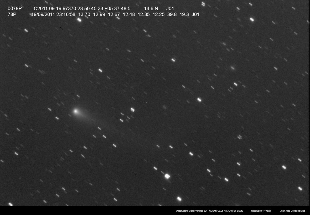 Cometa 78P/Gehrels 20 septiembre 2011 • Juanjo Gonzalez Imagen de este bonito cometa que los próximos meses alcanzará su máximo brillo, a principios de Noviembre. En estos momentos se encuentra a unos 180 millones de km de nosotros. Comparte esto: Haz clic para compartir en Facebook (Se abre en una ventana nueva) Facebook Haz clic para compartir en X (Se abre en una ventana nueva) X Me gusta Cargando... Relacionado