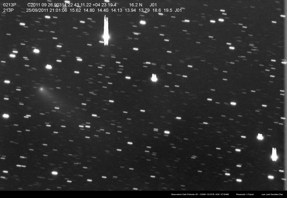 Nueva captura del 213P 29 septiembre 2011 • Juanjo Gonzalez Una nueva captura de este interesante cometa. Llevamos varios días de mal tiempo, y tengo unos asteroides que revisar, espero que el tiempo mejore y pueda continuar fotografinado cometas y otras cosas. Comparte esto: Comparte en Facebook (Se abre en una ventana nueva) Facebook Compartir en X (Se abre en una ventana nueva) X Me gusta Cargando... Relacionado