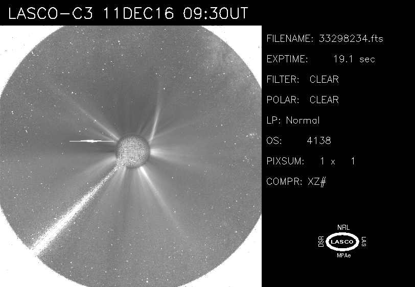 El cometa ya ha pasado por el perihelio hace unas horas. En las últimas imágenes de LASCO C2 y C3 se aprecia que al menos una parte de la cola ha podido sobrevivir al cercano encuentro. Habrá que ver su evolución, y si es posible observarla cuando se aleje del Sol.
