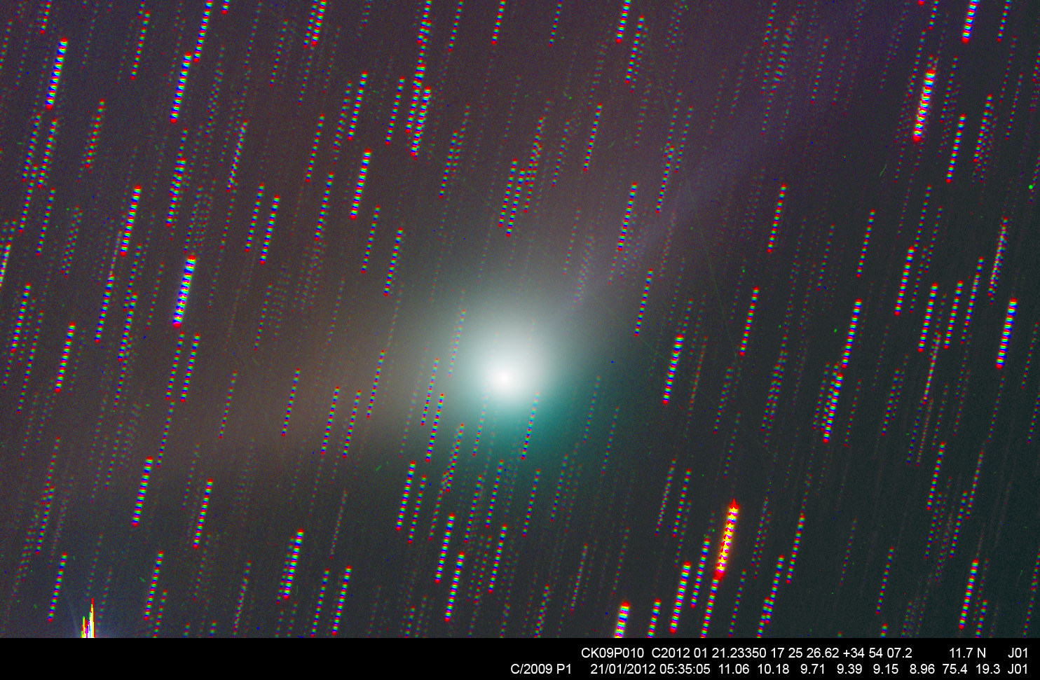 El cometa, que se encuentra a una distancia de 250 millones de km. de nosotros, tiene una mag. cercana a 8 en la banda R. y se desplaza por nuestro sistema solar a casi 120.000 km./hora. Alcanzará su máximo brillo a mediados del mes de Febrero.