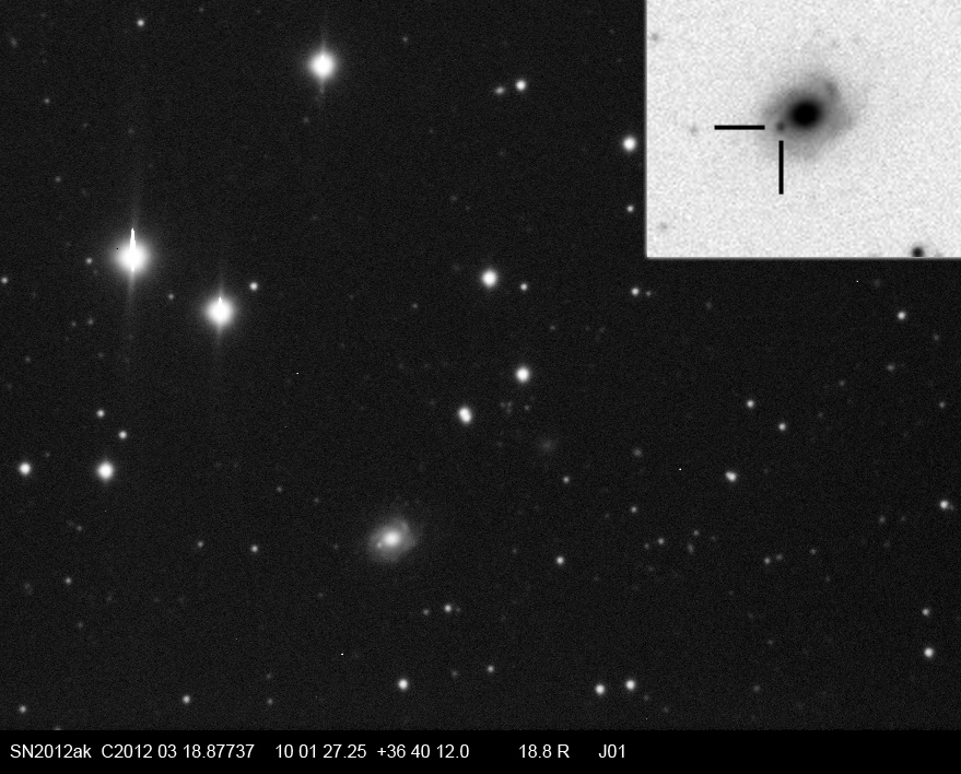 Supernovas SN2012A, SN2012ak y SN2012au 29 marzo 2012 • Juanjo Gonzalez Observaciones de tres supernovas realizadas hace 10 días, pero que no he podido procesar hasta ahora. Comparte esto: Comparte en Facebook (Se abre en una ventana nueva) Facebook Compartir en X (Se abre en una ventana nueva) X Me gusta Cargando... Relacionado