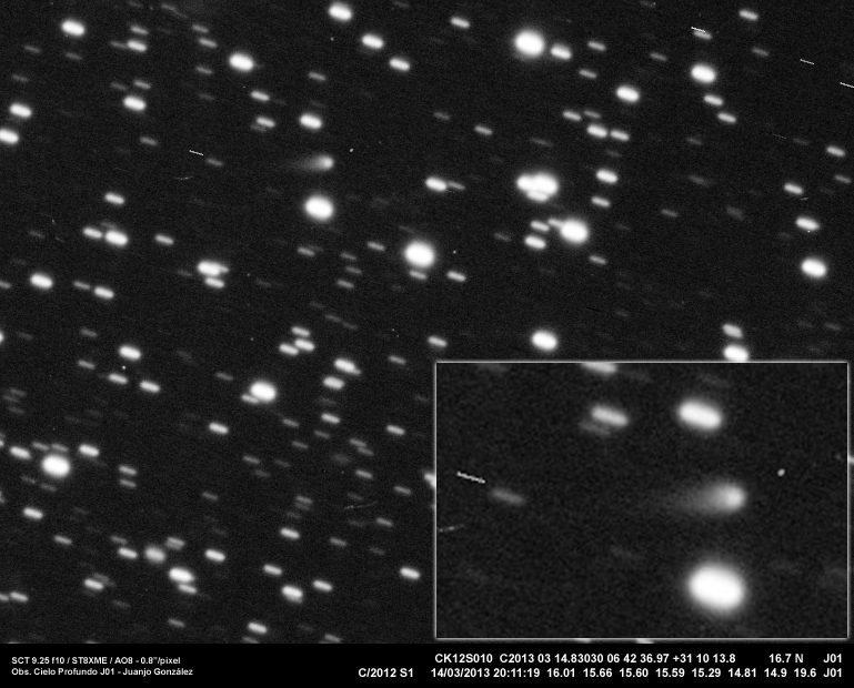 Imágenes de estos dos interesantes cometas, tomadas hace unos días. El P/2012 B1 esta alcanzando en estos momentos su máximo brillo al estar en su punto más cercano a la Tierra. Mientras tanto el C/2012 S1 continua su lento aumento de brillo, con la esperanza de que a finales de año alcance un brillo que permita observarlo incluso a simple vista.