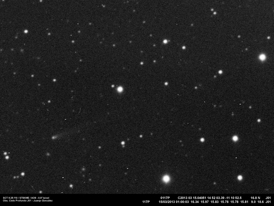 Cometas 29P, 63P, 117P, 273P y C/2011 J2 20 marzo 2013 • Juanjo Gonzalez Imágenes de algunos de los cometas más interesantes que podemos observar ahora mismo, con el permiso del C/2011 L4 claro, que aún no he podido observar porque no he pillado ni un sólo día despejado desde aquí. Comparte esto: Haz clic para compartir en Facebook (Se abre en una ventana nueva) Facebook Haz clic para compartir en X (Se abre en una ventana nueva) X Me gusta Cargando... Relacionado