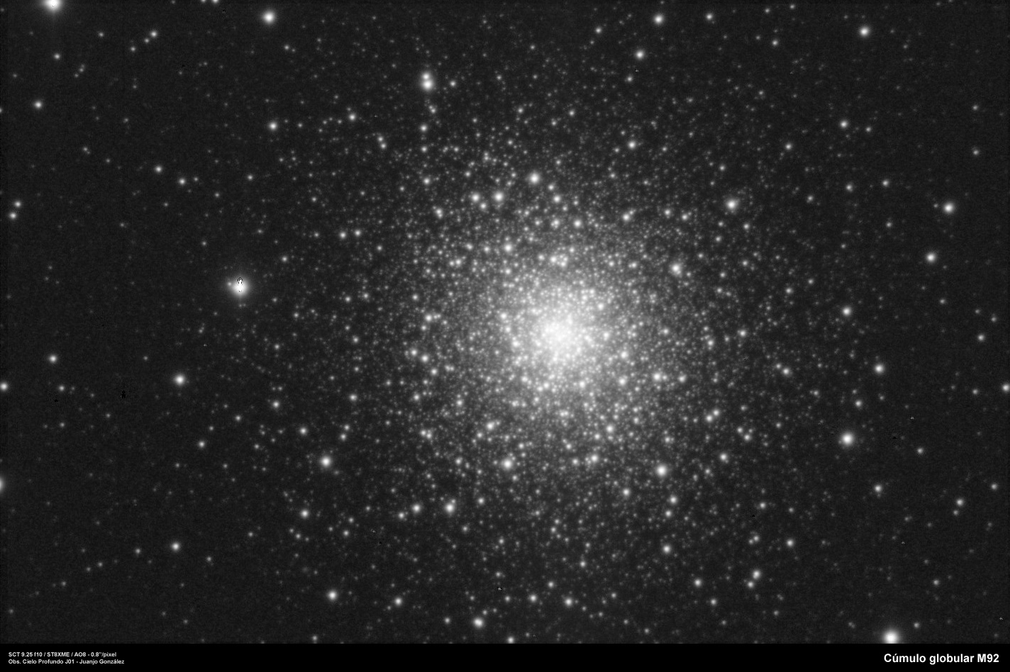 Entre cometa y cometa siempre es interesante fotografiar objetos un poco más lejanos fuera de nuestro sistema solar. Este es el cúmulo globular M92 en Hércules, situado a unos 26.000 años luz de la Tierra. La imagen es el reultado de sumar 14 tomas de 180″ cada una.