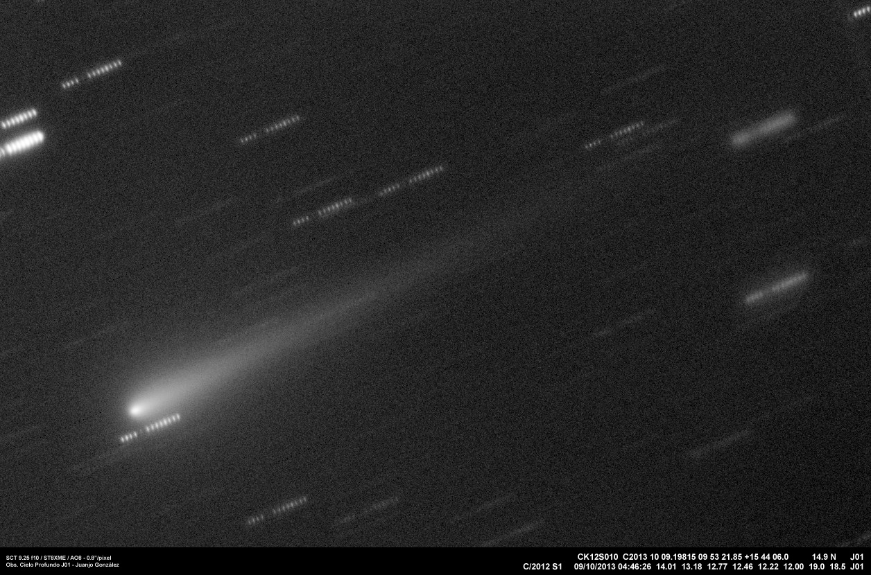 Cometa C/2012 S1 9 octubre 2013 • Juanjo Gonzalez Una nueva imagen del cometa C/2012 S1 (ISON) tomada la pasada noche casi al amanecer. Comparte esto: Haz clic para compartir en Facebook (Se abre en una ventana nueva) Facebook Haz clic para compartir en X (Se abre en una ventana nueva) X Me gusta Cargando... Relacionado