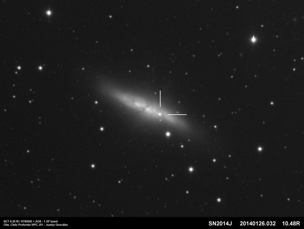 De vuelta a la actividad después de semanas de mal tiempo, esta es una obervación de la supernova que se ha encontrado en la Galaxia M82, situada en la constelación de la Osa Mayor, a unos 11.5 millones de años luz.