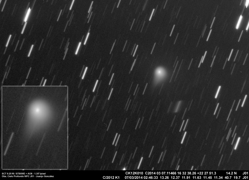Imágenes de los tres cometas más interesantes que podemos observar en estos momentos. El C/2012 X1 se encuentra en estos momentos en su máximo brillo teórico, tras pasar por el perihelio hace un par de semanas. El C/2012 K1 sin embargo se encuentra en pleno incremento de actividad según se acerca a su perihelio, para el cual aún faltan 5 meses.