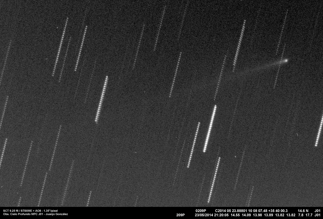 Cometa 209P (LINEAR) 24 mayo 2014 • Juanjo Gonzalez Nueva observación del cometa responsable de la lluvia de estrellas fugaces prevista para esta noche. Obtenida en muy malas condiciones entre las nubes. En estos momentos se encuentra a sólo 11 millones de km. de distancia de la Tierra. Comparte esto: Haz clic para compartir en Facebook (Se abre en una ventana nueva) Facebook Haz clic para compartir en X (Se abre en una ventana nueva) X Me gusta Cargando... Relacionado