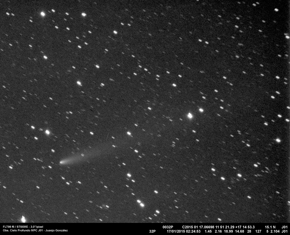 Cometa 32P/Comas Solá 18 enero 2015 • Juanjo Gonzalez Una nueva imagen del cometa 32P, situado en estos momentos a 215 millones de km. de distancia de la Tierra. Su brillo esta comenzando a decaer. Comparte esto: Haz clic para compartir en Facebook (Se abre en una ventana nueva) Facebook Haz clic para compartir en X (Se abre en una ventana nueva) X Me gusta Cargando... Relacionado