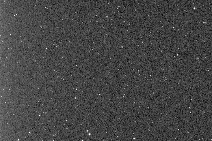En esta imagen se ve la traza del asteroide sobre el fondo estrellado: