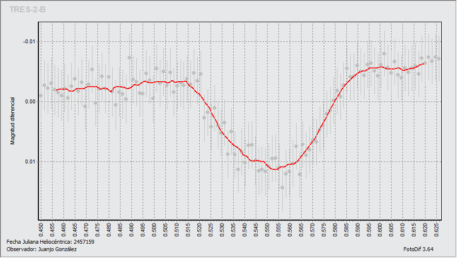 Buena observación del tránsito del exoplaneta TrES-2b realizada la pasada noche con unas condiciones atmosféricas excepcionales.