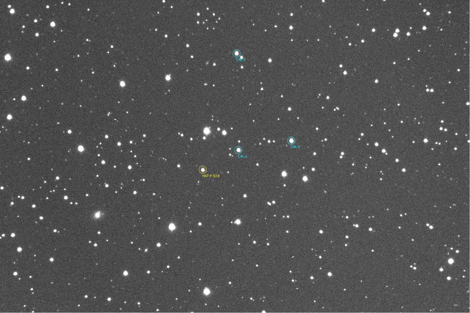 Tránsito del exoplantea HAT-P-53 b observado hace unos días. Este sistema solar, situado a unos 2.400 años luz, tiene al menos un planeta de un tamaño 1.4 veces mayor que Júpiter, que completa una órbita en tan sólo 2 días terrestres.