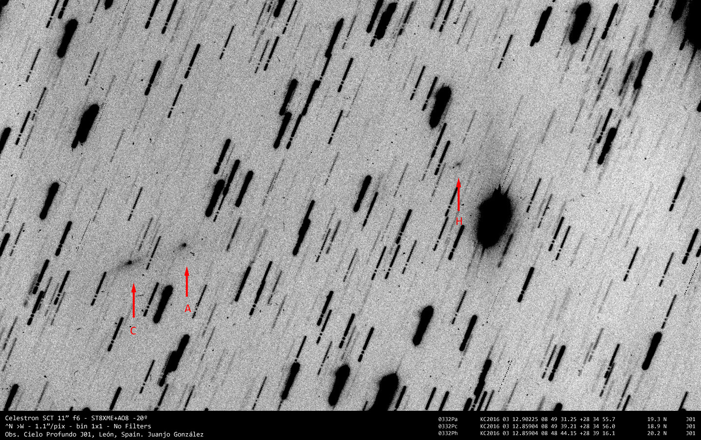 Cometa 332P/Ikeya-Murakami 13 marzo 2016 • Juanjo Gonzalez Imagen de la pasada noche, donde se aprecian al menos tres de los fragmentos del cometa P/2010 V1, ahora denominado 332p tras haber sido oficialmente numerado. Comparte esto: Haz clic para compartir en Facebook (Se abre en una ventana nueva) Facebook Haz clic para compartir en X (Se abre en una ventana nueva) X Me gusta Cargando... Relacionado