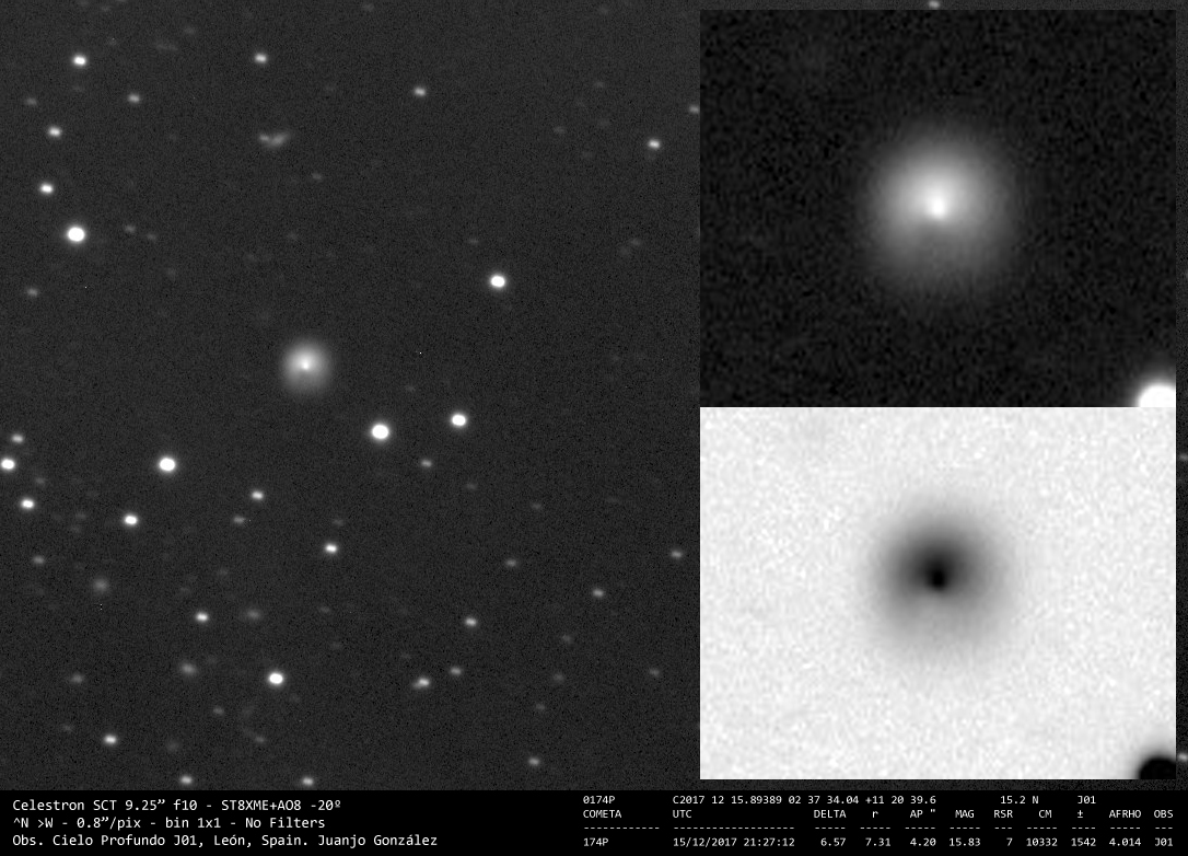 Cometa 174P/Echeclus en estallido 16 diciembre 2017 • Juanjo Gonzalez Nuevas imágenes del cometa 174P (Echeclus) mostrando la evolución del estallid de actividad sufrido hace unos días. Comparte esto: Haz clic para compartir en Facebook (Se abre en una ventana nueva) Facebook Haz clic para compartir en X (Se abre en una ventana nueva) X Me gusta Cargando... Relacionado