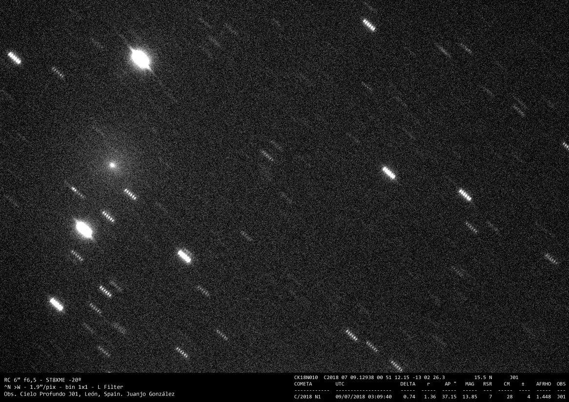 Cometa C/2018 N1 (NEOWISE) 14 julio 2018 • Juanjo Gonzalez Imagen del cometa C/2018 N1 (NEOWISE) de la pasada noche del 9 de Julio, casi al amanecer. Estaba mucho más brillante de los previsto. Comparte esto: Haz clic para compartir en Facebook (Se abre en una ventana nueva) Facebook Haz clic para compartir en X (Se abre en una ventana nueva) X Me gusta Cargando... Relacionado