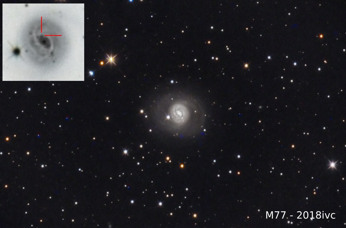Supernova SN 2018ivc en M77 16 diciembre 2018 • Juanjo Gonzalez Imagen de la supernova SN 2018ivc descubierta en la galaxia M77 Comparte esto: Haz clic para compartir en Facebook (Se abre en una ventana nueva) Facebook Haz clic para compartir en X (Se abre en una ventana nueva) X Me gusta Cargando... Relacionado