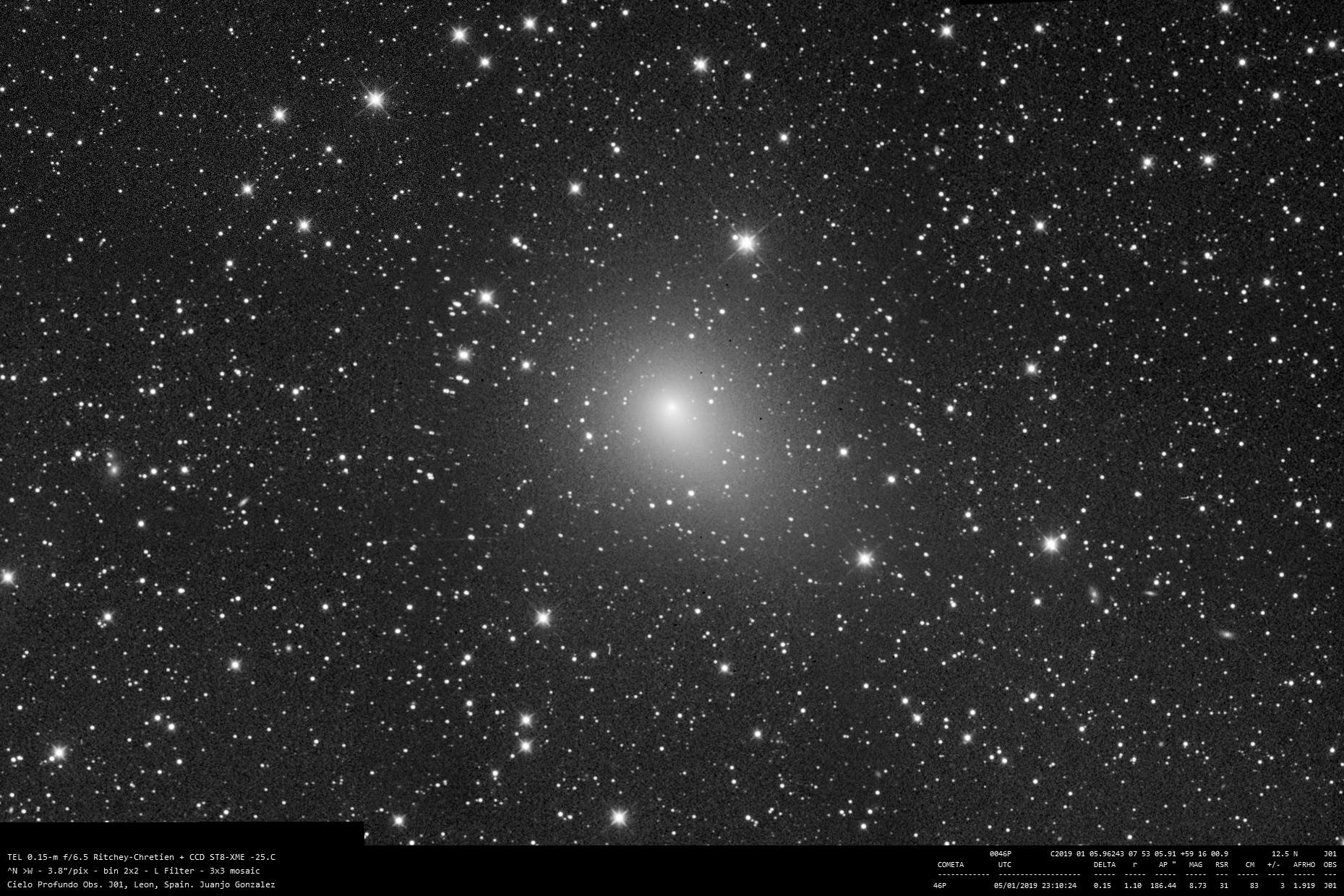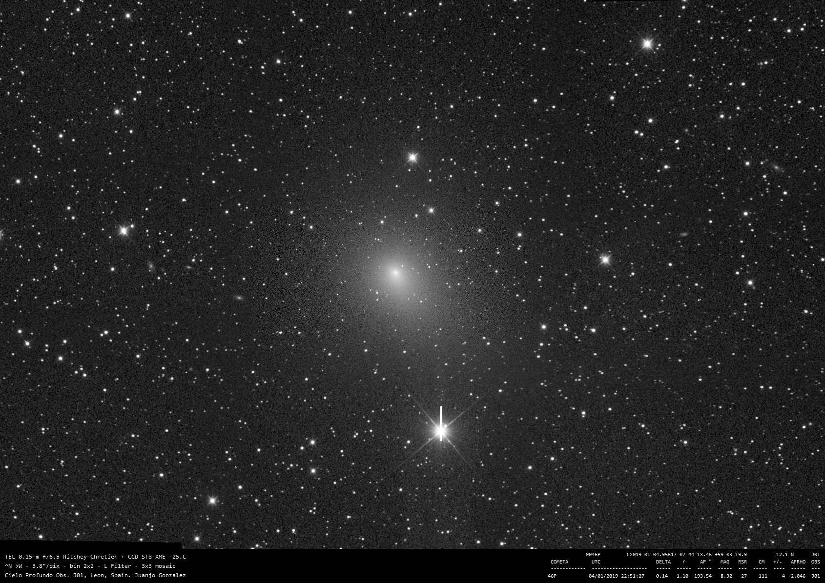 Cometa 46P/Wirtanen 6 enero 2019 • Juanjo Gonzalez Nuevos mosaicos 3×3 del cometa 46P/Wirtanen correspondiente a las pasadas dos noche. Comparte esto: Haz clic para compartir en Facebook (Se abre en una ventana nueva) Facebook Haz clic para compartir en X (Se abre en una ventana nueva) X Me gusta Cargando... Relacionado