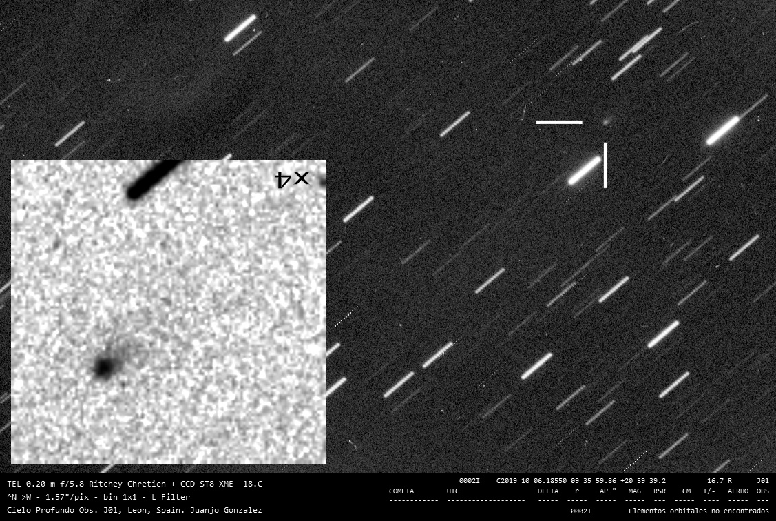 Cometa interstelar 2I/Borisov 6 octubre 2019 • Juanjo Gonzalez Una nueva imagen del cometa interstelar 2I/Borisov obtenida la pasada madrugada. Comparte esto: Comparte en Facebook (Se abre en una ventana nueva) Facebook Compartir en X (Se abre en una ventana nueva) X Me gusta Cargando... Relacionado