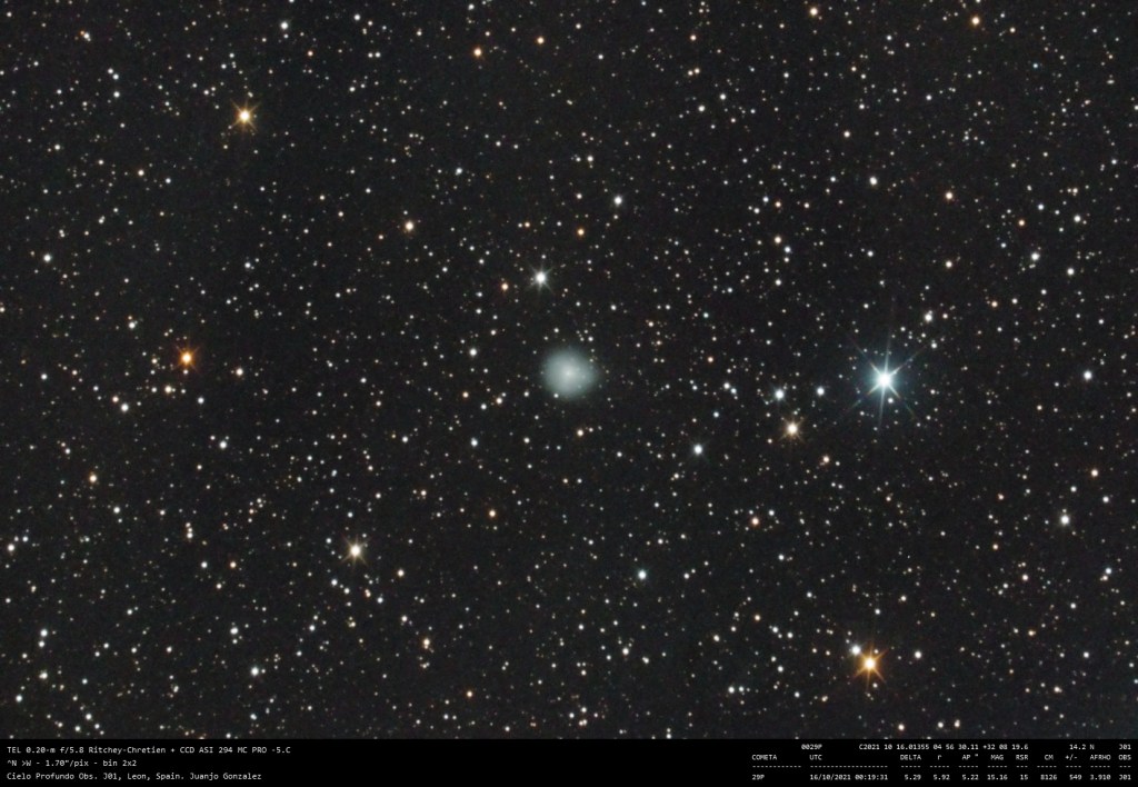 Cometa 29P Imagen • 21 octubre 2021 • Juanjo Gonzalez Comparte esto: Comparte en Facebook (Se abre en una ventana nueva) Facebook Compartir en X (Se abre en una ventana nueva) X Me gusta Cargando... Relacionado
