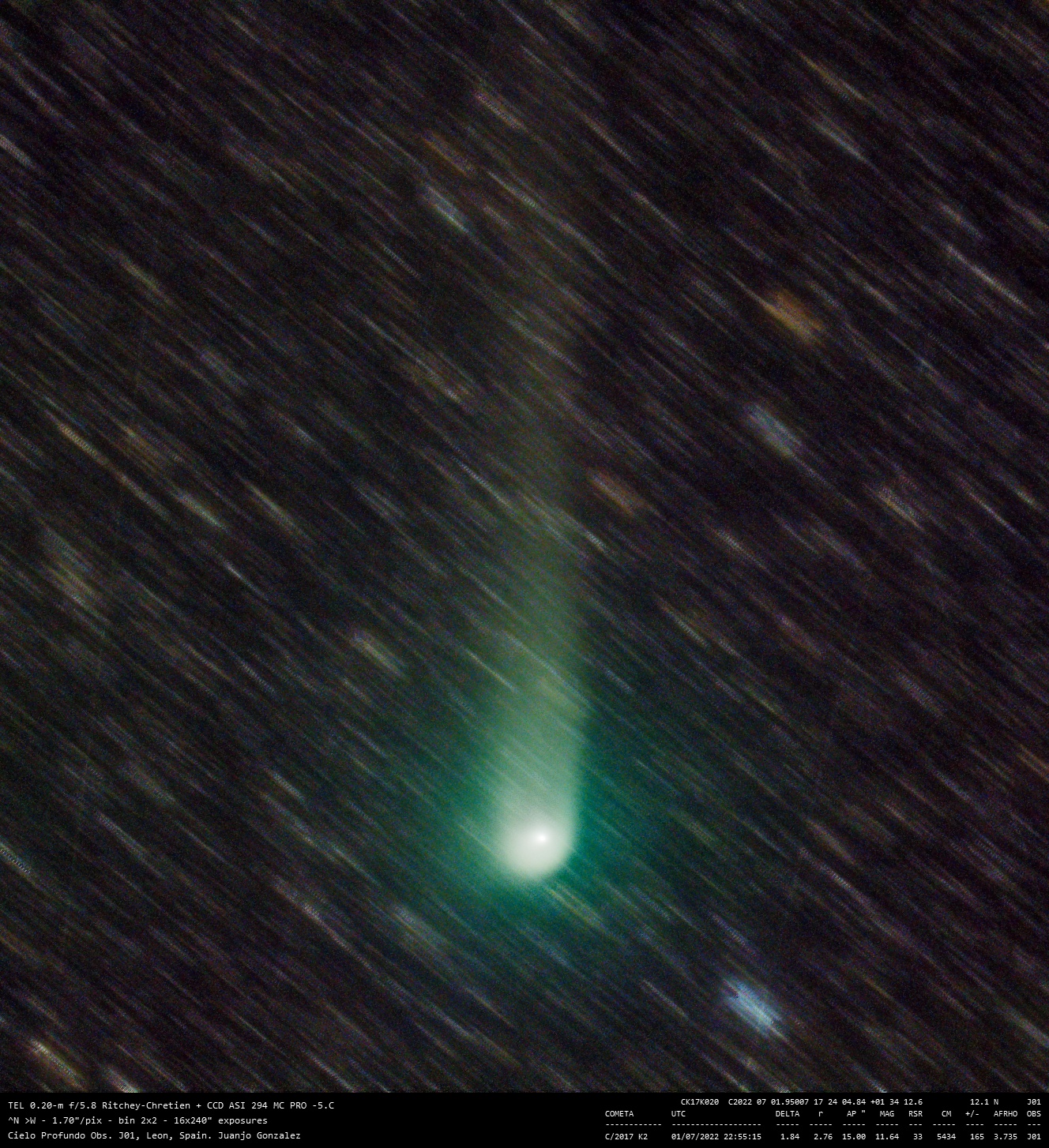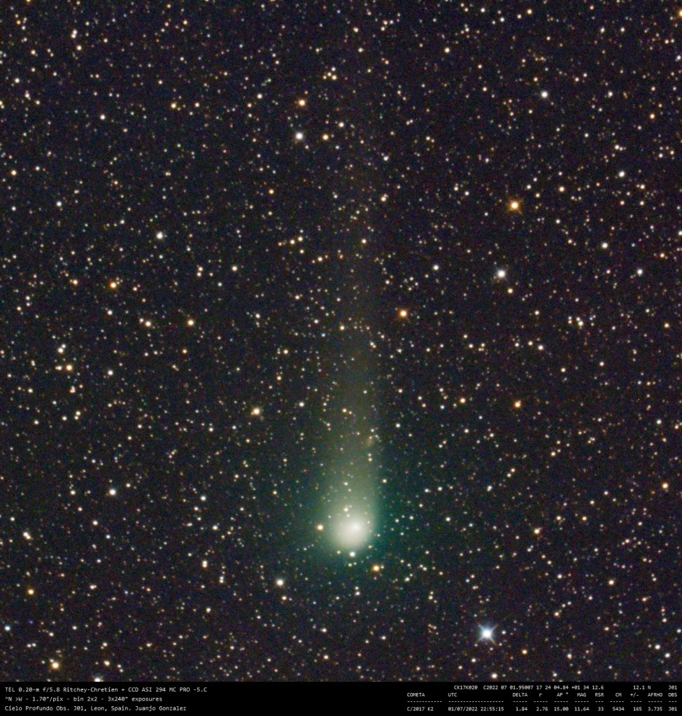 Cometa C/2017 K2 2 julio 20222 julio 2022 • Juanjo Gonzalez Comparte esto: Comparte en Facebook (Se abre en una ventana nueva) Facebook Compartir en X (Se abre en una ventana nueva) X Me gusta Cargando... Relacionado