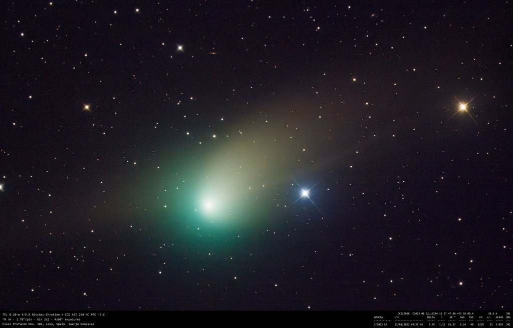 Cometa C/2022 E3 22 enero 2023 • Juanjo Gonzalez Comparte esto: Comparte en Facebook (Se abre en una ventana nueva) Facebook Compartir en X (Se abre en una ventana nueva) X Me gusta Cargando... Relacionado