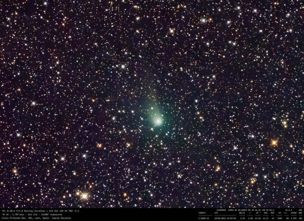 Cometa C/2020 V2 Imagen • 8 febrero 2023 • Juanjo Gonzalez Comparte esto: Comparte en Facebook (Se abre en una ventana nueva) Facebook Compartir en X (Se abre en una ventana nueva) X Me gusta Cargando... Relacionado