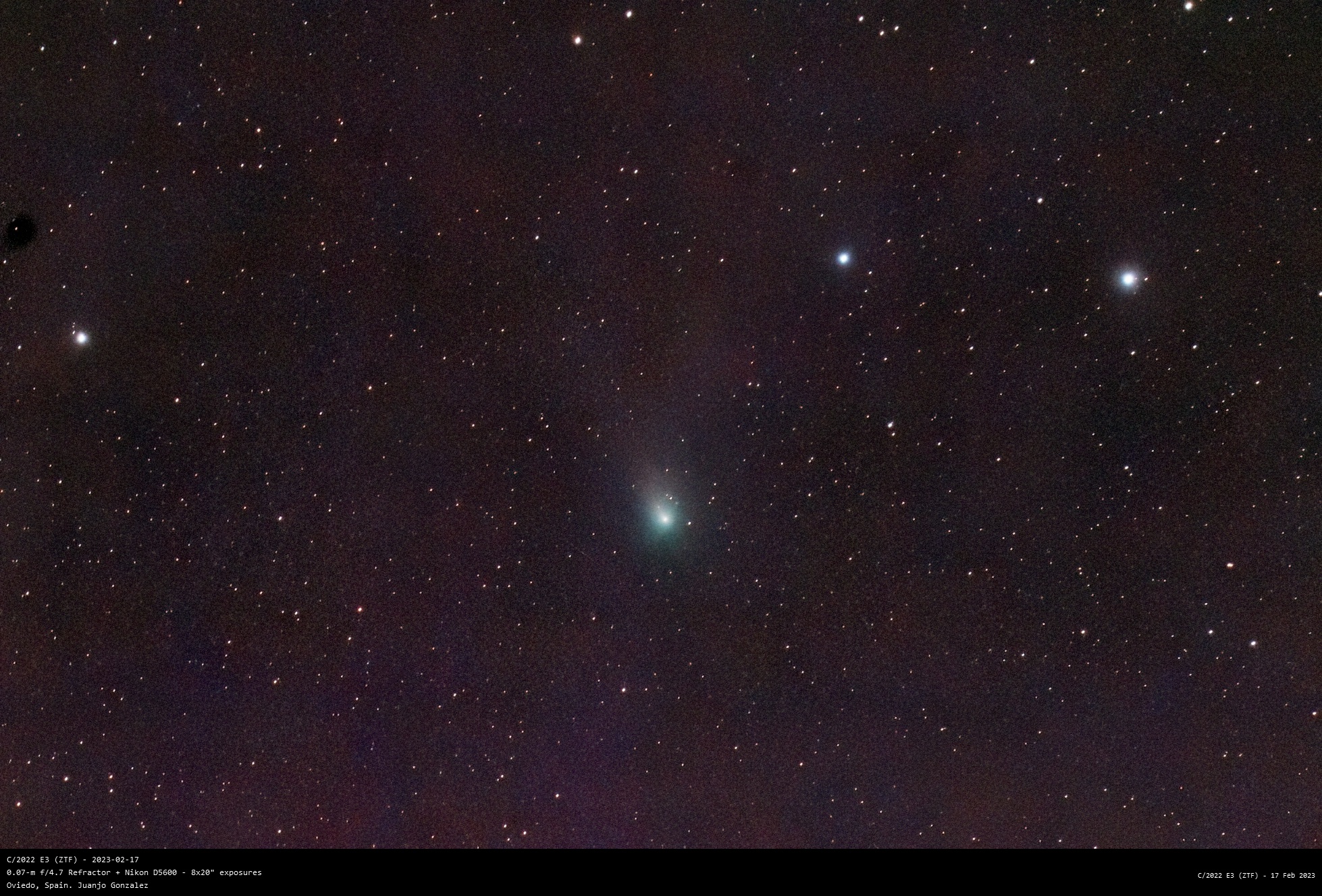 Cometa C/2022 E3 desde cielo urbano Imagen • 18 febrero 2023 • Juanjo Gonzalez Comparte esto: Haz clic para compartir en Facebook (Se abre en una ventana nueva) Facebook Haz clic para compartir en X (Se abre en una ventana nueva) X Me gusta Cargando... Relacionado