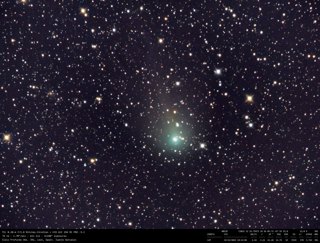 Cometa 12P Imagen • 16 diciembre 2023 • Juanjo Gonzalez Comparte esto: Haz clic para compartir en Facebook (Se abre en una ventana nueva) Facebook Haz clic para compartir en X (Se abre en una ventana nueva) X Me gusta Cargando... Relacionado