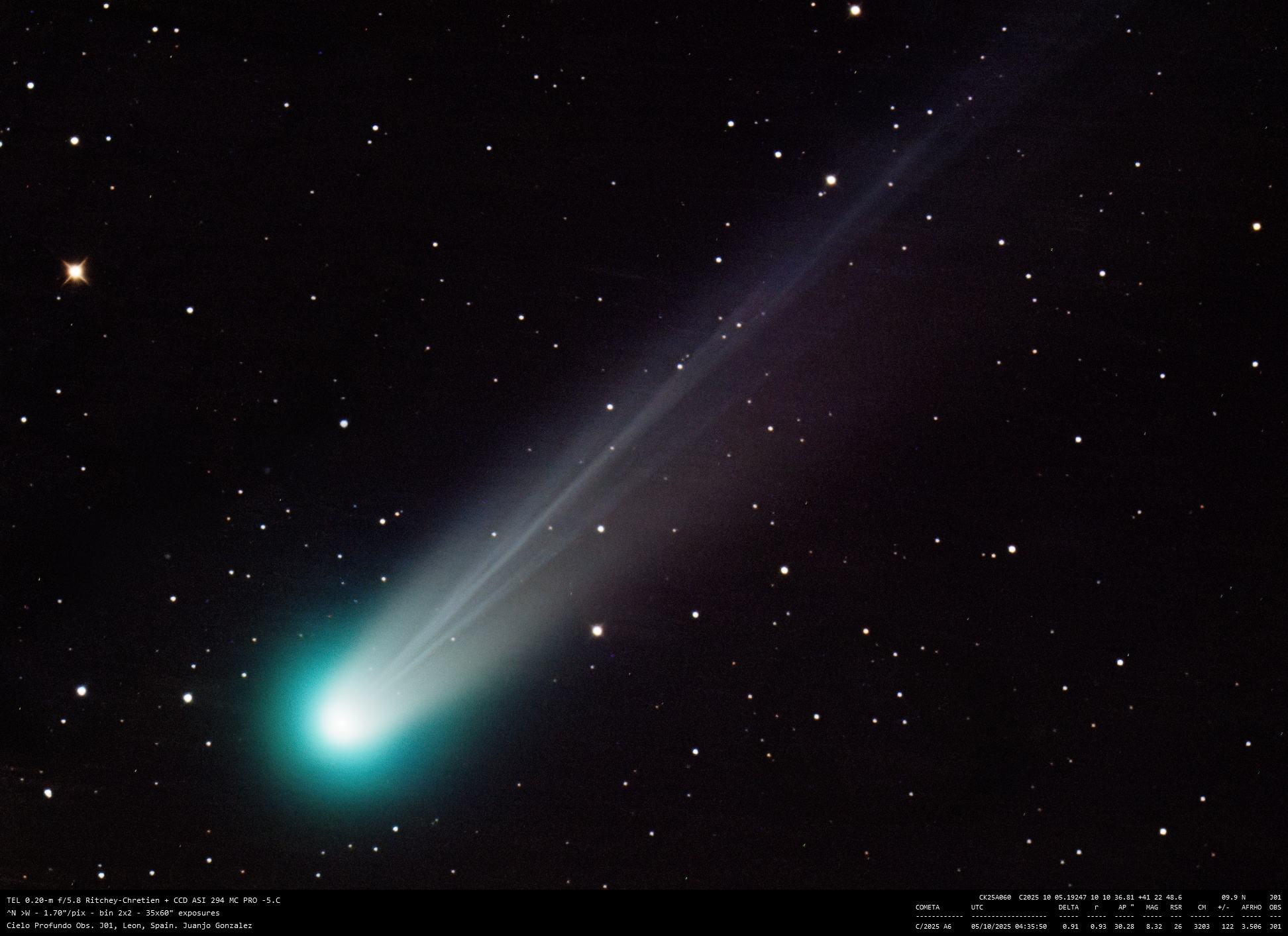Cometa C/2025 A6 Imagen • 8 octubre 2025 • Juanjo Gonzalez Comparte esto: Comparte en Facebook (Se abre en una ventana nueva) Facebook Compartir en X (Se abre en una ventana nueva) X Me gusta Cargando... Relacionado