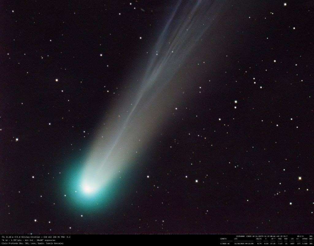 Cometa C/2025 A6 Imagen • 11 octubre 2025 • Juanjo Gonzalez Comparte esto: Comparte en Facebook (Se abre en una ventana nueva) Facebook Compartir en X (Se abre en una ventana nueva) X Me gusta Cargando... Relacionado