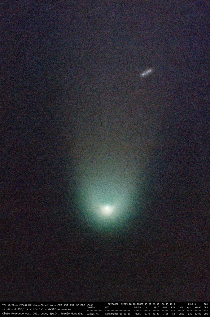 Nucleo cometa C/2025 A6 Imagen • 18 octubre 2025 • Juanjo Gonzalez Comparte esto: Comparte en Facebook (Se abre en una ventana nueva) Facebook Compartir en X (Se abre en una ventana nueva) X Me gusta Cargando... Relacionado