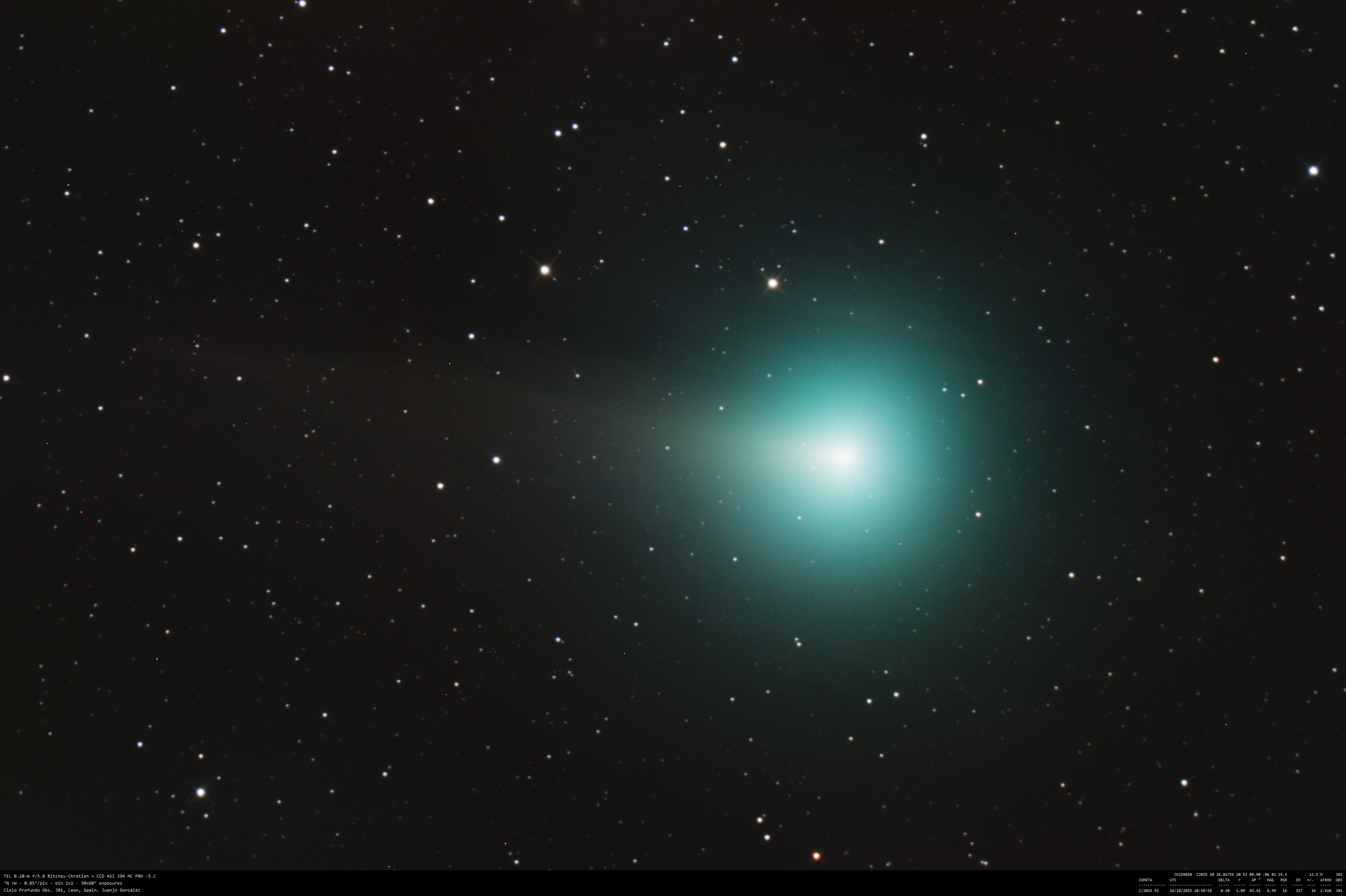 Cometa C/2025 R2 (SWAN) Imagen • 28 octubre 2025 • Juanjo Gonzalez Comparte esto: Comparte en Facebook (Se abre en una ventana nueva) Facebook Compartir en X (Se abre en una ventana nueva) X Me gusta Cargando... Relacionado
