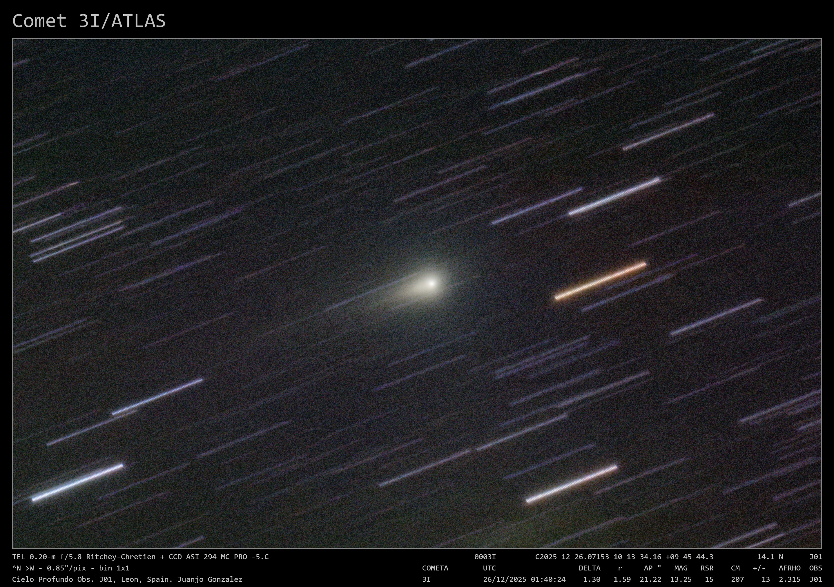 Cometa 3I/ATLAS Imagen • 26 diciembre 2025 • Juanjo Gonzalez Comparte esto: Haz clic para compartir en Facebook (Se abre en una ventana nueva) Facebook Haz clic para compartir en X (Se abre en una ventana nueva) X Me gusta Cargando... Relacionado