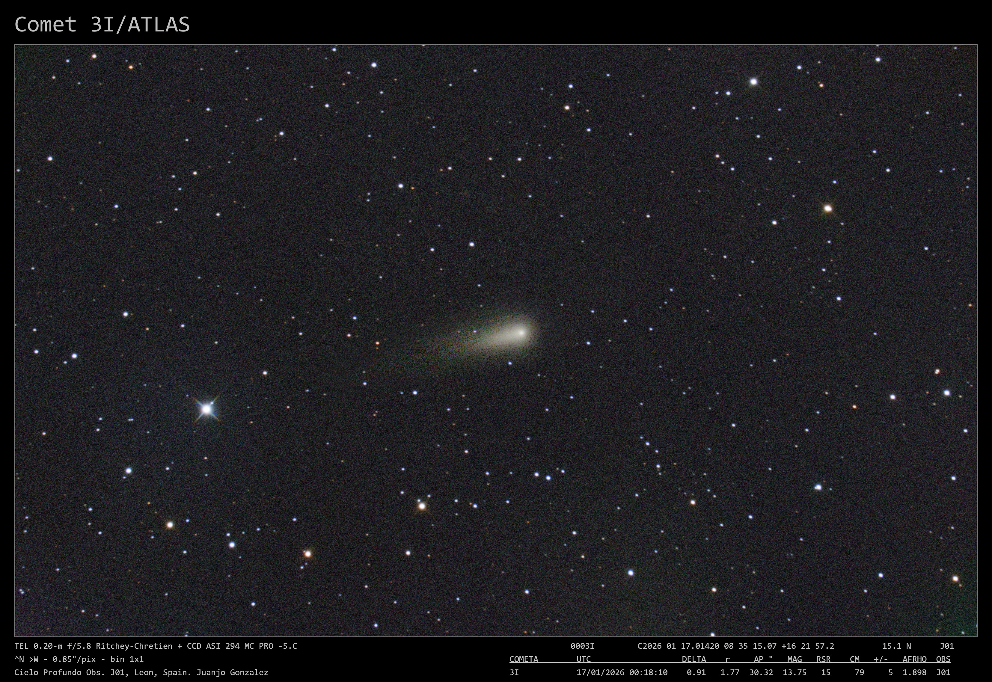 Cometa 3I/ATLAS Imagen • 18 enero 2026 • Juanjo Gonzalez Comparte esto: Compartir en Facebook (Se abre en una ventana nueva) Facebook Compartir en X (Se abre en una ventana nueva) X Me gusta Cargando... Relacionado