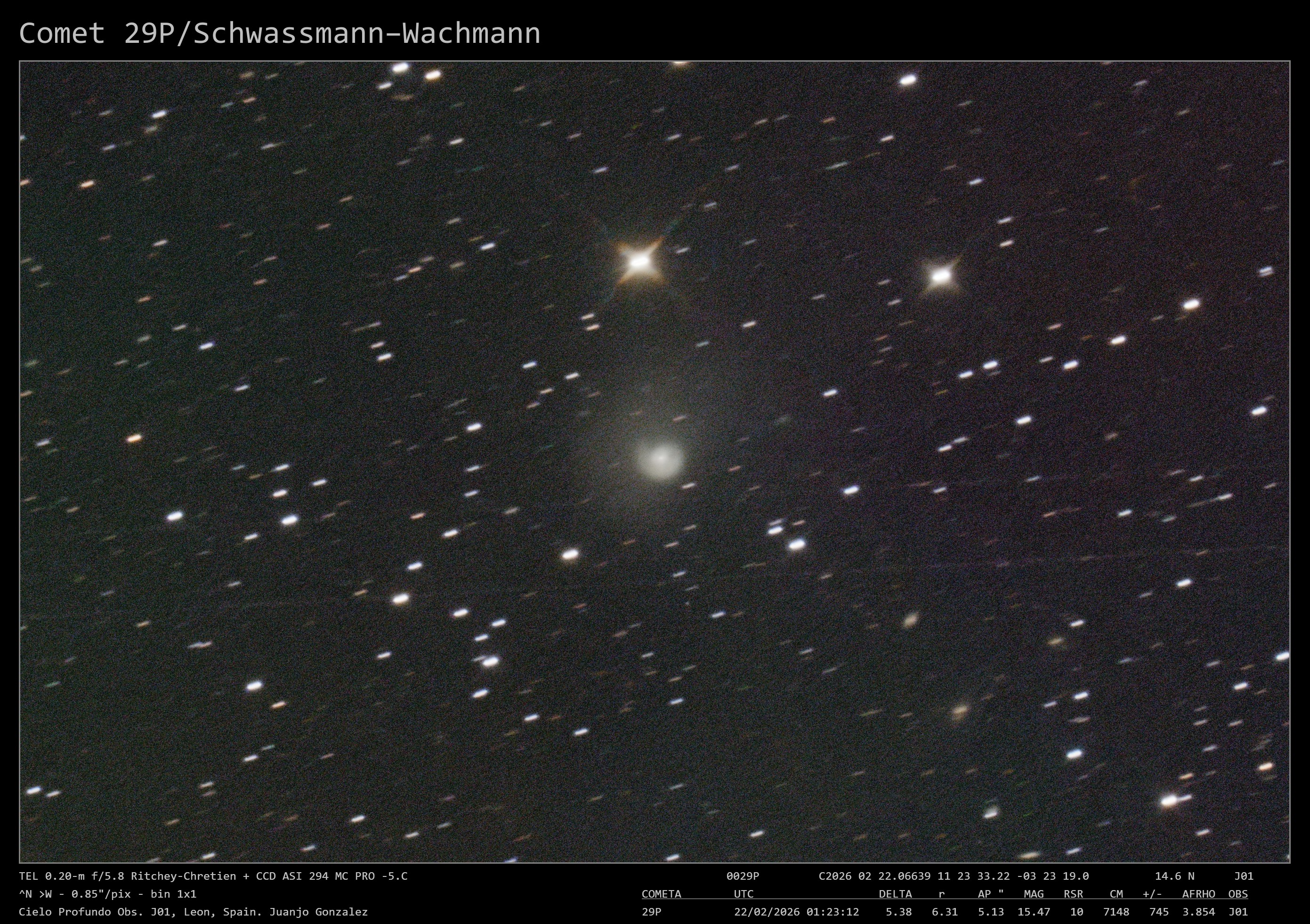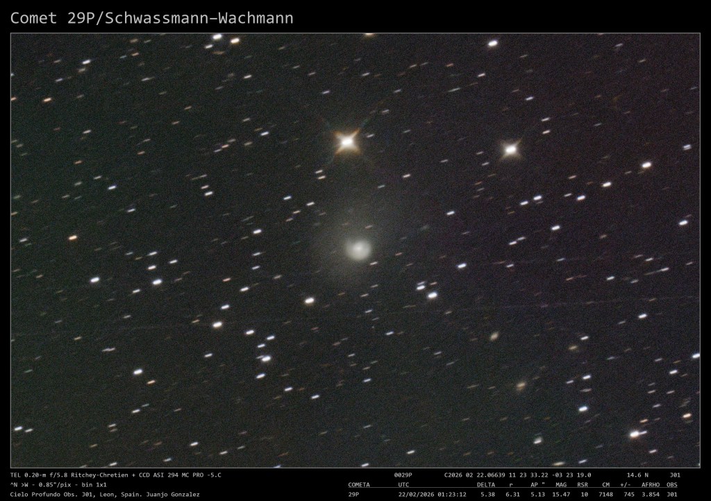 Cometa 29P/Schwassmann–Wachmann Imagen • 24 febrero 2026 • Juanjo Gonzalez Comparte esto: Comparte en Facebook (Se abre en una ventana nueva) Facebook Compartir en X (Se abre en una ventana nueva) X Me gusta Cargando... Relacionado