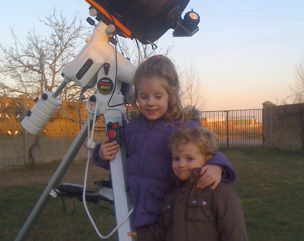Tengo finalmente que dedicar unas palabras a mis dos maravillosos niños pequeños, Silvia y Pablo (demasiado pequeños para saber si comparten mi entusiasmo por la astronomía) y a mi tambien maravillosa mujer, Ana, que aguanta estoicamente mi afición de noches sin dormir, días no muy despierto, y gastos «astronómicos», y que merece al menos estas líneas en éste blog.