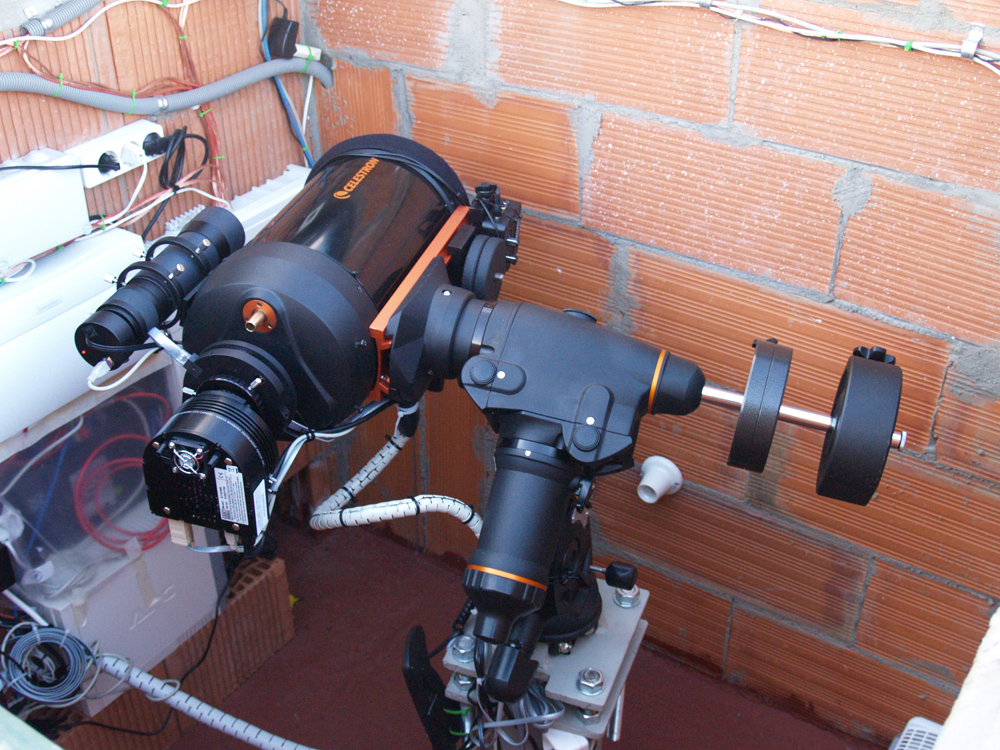 Sobre la montura, en una primera configuración voy a colocar un sencillo Celestron C6, un tubo SC de 6″. El tubo irá equipado con un enfocador JMI motorizado controlable desde el ordenador y la cámara sera un SBIG ST2000XM con rueda portafiltros y filtros LRGB de Astrodon I series GenII. Un equipo majo para empezar 🙂